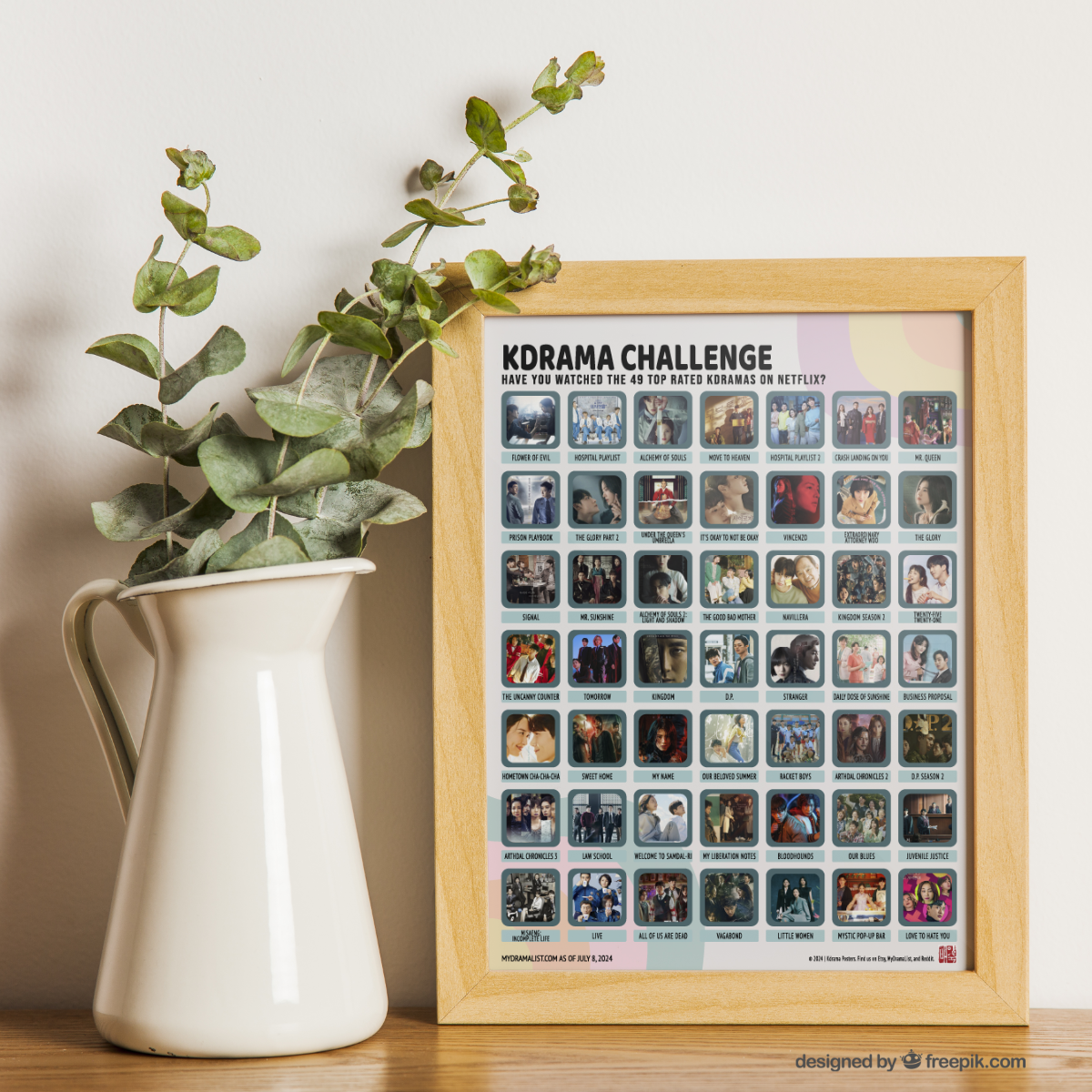 Whether youโ€™re a long-time viewer or just starting your journey, this interactive display adds a whole new dimension to your Kdrama binge sessions. Featuring 49 popular Netflix Kdramas such as Hospital Playlist, Daily Dose of Sunshine, All of Us Are Dead, and Hotel del Luna, this poster is the perfect gift for every Kdrama enthusiast or Korean pop culture aficionado. Bring your love for Kdramas to life and showcase your watchlist with this innovative and interactive poster. Donโ€™t know where to begin? Select one from the poster and scratch it off after enjoying every gripping episode!