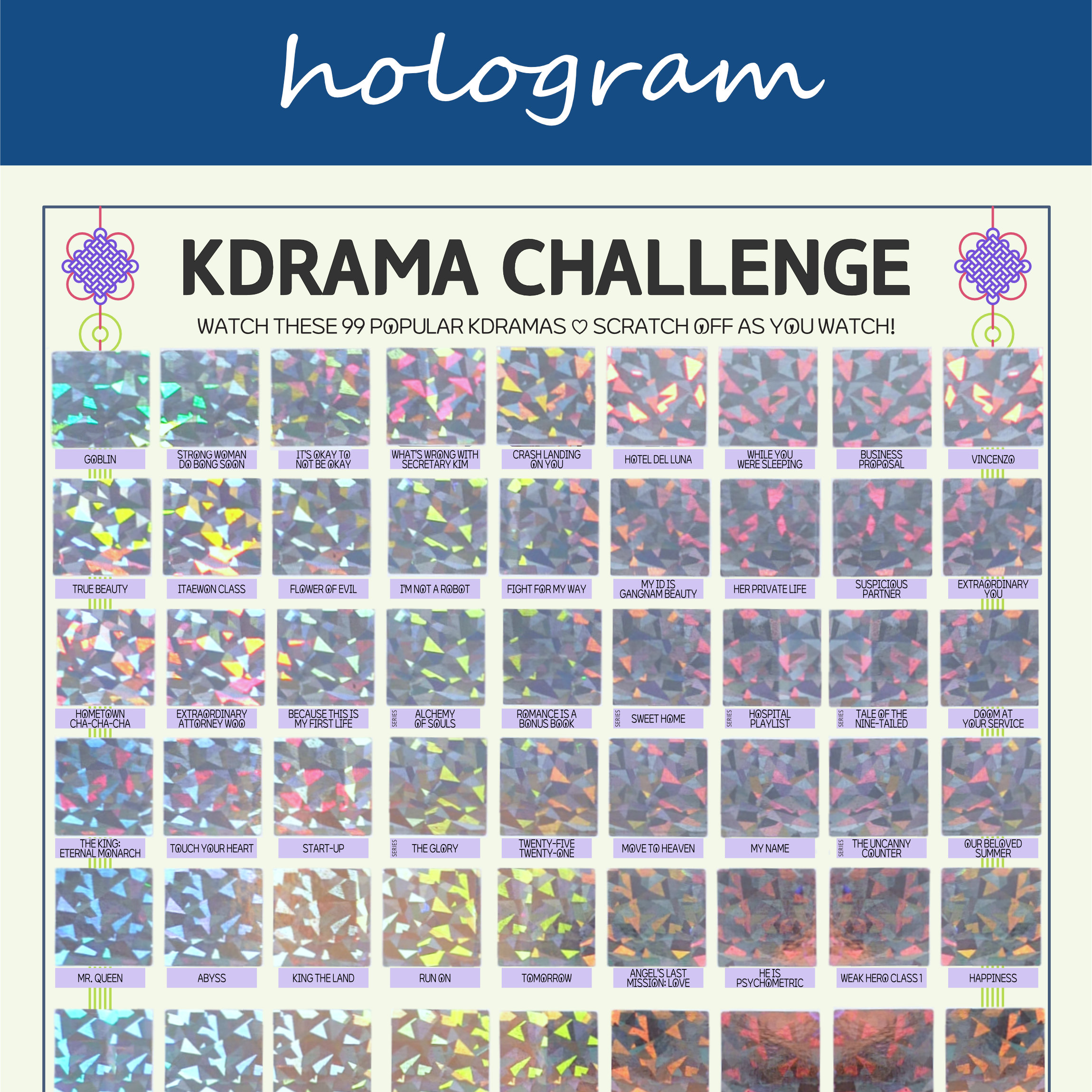 Dive into the colorful world of Korean dramas with the Kdrama Challenge Scratch-Off Poster. Featuring 99 popular kdramas such as Goblin, Alchemy of Souls, and Hotel del Luna.